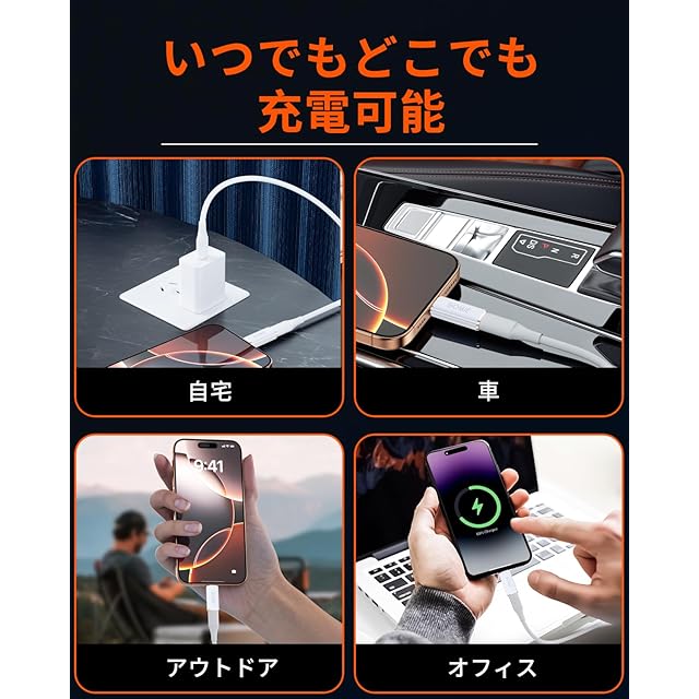 PD急速充電:このLight-ning メス to Type-C オス変換アダプタは、27W/60W/QC100W急速充電電力を提供するUSB PD技術をサポートしており、充電効率を大幅に向上させ、30分で60%までi-Phone 15/16デバイスを充電することができます。PD Type-C to Light-ningデータケーブルを使用すると、9V/27Wの高速充電とデータ転送をサポートします。MFi認定(USB-A to Light-ning)データケーブルを使用すると、5V/12Wの高速充電とデータ転送をサポートします。