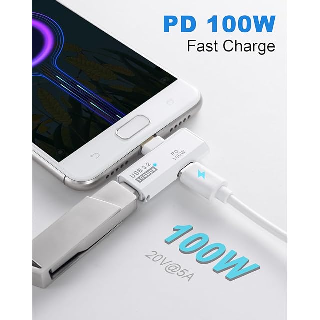 USB 3.2技術を使用しており、この2-in-1 USB C延長アダプターは最大10Gbpsのデータ伝送をサポートします。このUSB OTGアダプターの伝送速度はUSB 3.0の2倍、USB 2.0の20倍以上であり、4K HD映画や音楽を数秒で転送できるため、比類のない速度体験を提供します。