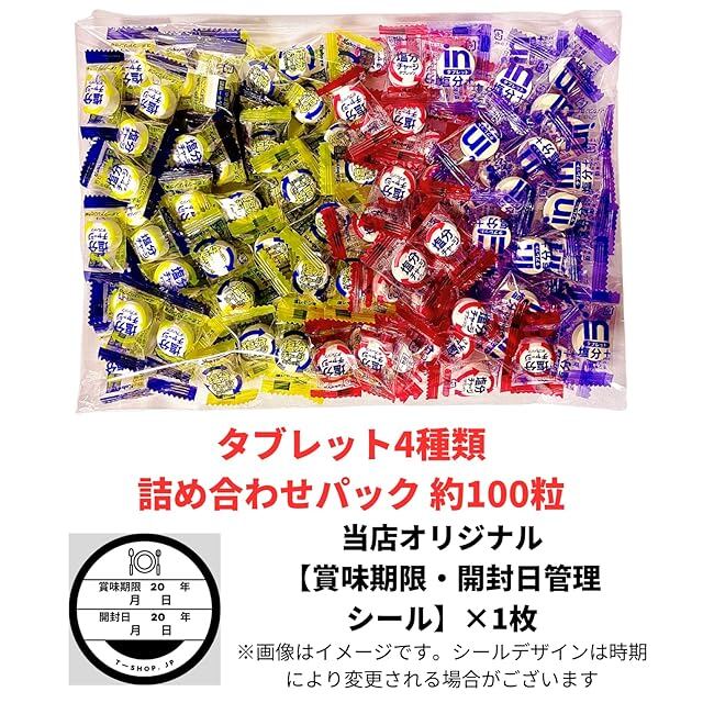 4種類の塩分タブレットを詰め合わせました。欲張り100粒セットです。【オリジナル賞味期限・開封日管理シール付き】