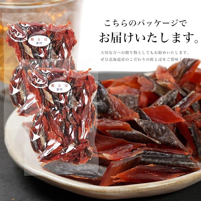 鮭の乾燥や脂のりの状況具合や鮭の魚体によっては、鮭の身から皮を剥く際に薄い皮が白く残る場合がございます。