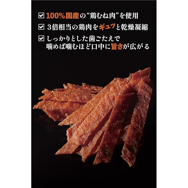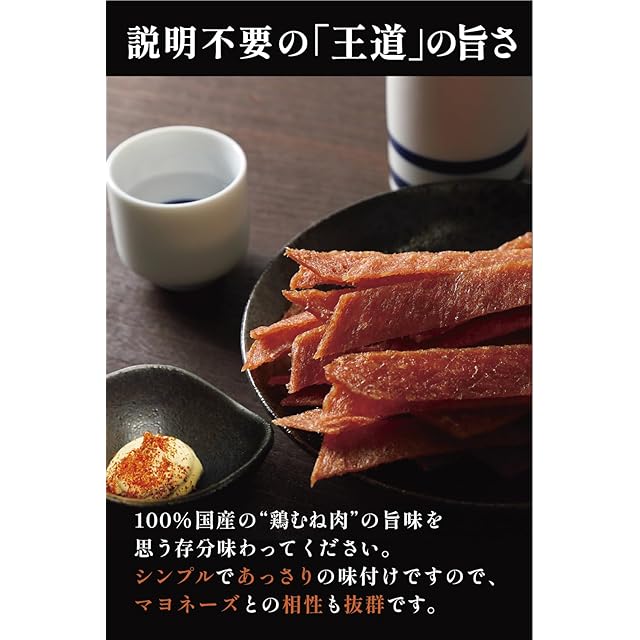 【100%国産の鶏むね肉使用!安心の高品質】 国産の新鮮な鶏むね肉だけを使用しており、低脂質で高たんぱく、ビタミンB群やアミノ酸も豊富な健康志向の方にぴったりのおつまみです。保存料も最小限に抑え、安心して召し上がれる品質を提供しています。
