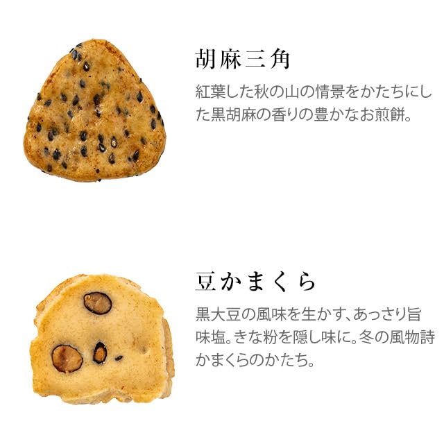 もち米(国産)、うるち米(国産)、砂糖、植物油脂、しょうゆ、大豆、もち米粉(もち米(国産))、黒ごま、のり、きな粉、食塩、えび、青のり、デキストリン、発酵調味料、たんぱく加水分解物、魚介エキス調味料、魚醤(魚介類)、水あめ、昆布エキスパウダー、香辛料、クリーミングパウダー、みりん/調味料(アミノ酸等)、増粘剤(加工でん粉、プルラン)、着色料(紅麹、クチナシ)、乳化剤、酸味料、香料、香辛料抽出物、酸化防止剤(V.E)、甘味料(カンゾウ)、(一部にえび・小麦・乳成分・ごま・さば・大豆・鶏肉・豚肉・魚醤(魚介類)を含む)
