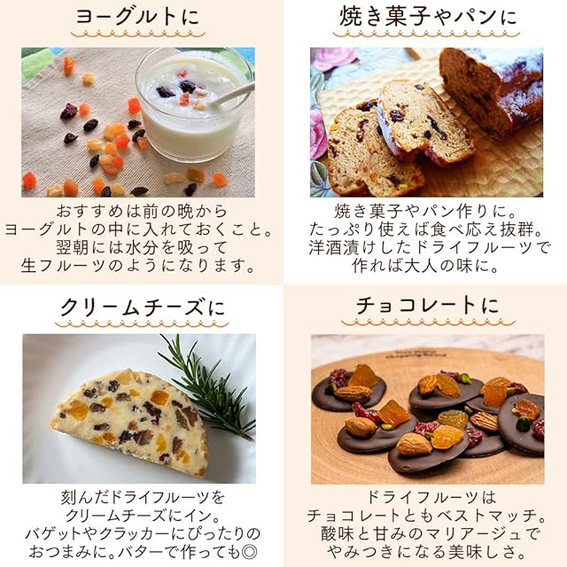 ドライフルーツはチョコレートともベストマッチ。酸味と甘みのマリアージュでやみつきになる美味しさです。
