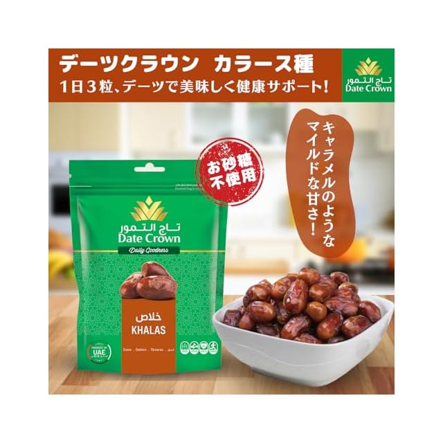 【まさにデーツクラウン(デーツの王冠)】Date Crown(デーツクラウン)はアラブ王国御用達のブランドで、世界48か国で親しまれている世界最大のデーツブランドの一つです。アルフォア社(UAE) のインターナショナルブランドが、UAE産の完熟デーツの中でもより高い基準をクリアした高品質なデーツを日本にお届けしています。