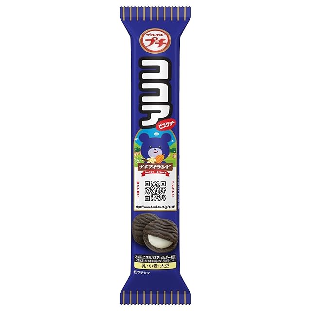 原材料:小麦粉(国内製造)、砂糖、ショートニング、ココアパウダー、小麦全粒粉、乳糖、異性化液糖、ホエイパウダー(乳成分を含む)、デキストリン、食塩 / 膨脹剤、乳化剤(大豆由来)、香料