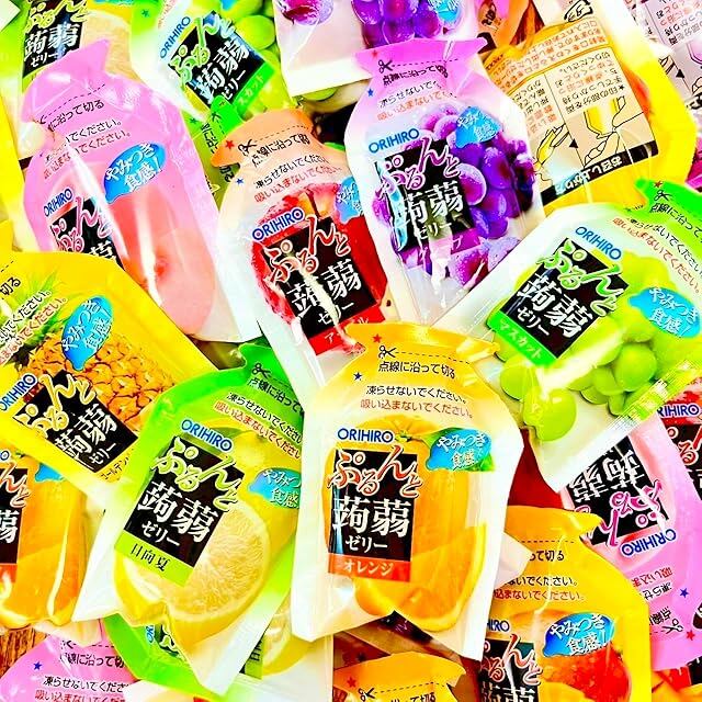 オリヒロのぷるんと蒟蒻ゼリーは果汁感たっぷりでとってもフルーティー!蒟蒻粉配合で食感も楽しめる美味しいゼリーです。