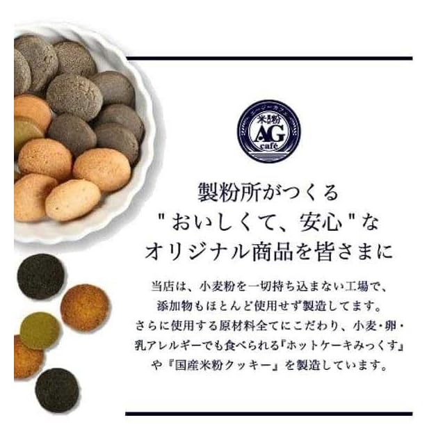 大阪・泉大津 手作りグルテンフリーお菓子【agcafe 米粉専門店】。こだわりの富山県産米粉使用で美味しく健康的なクッキー。小麦粉アレルギーの方や、ダイエット中の方にも嬉しい、グルテンフリーお菓子詰め合わせセット。自分のご褒美や大切な人へのプレゼントにオススメです。