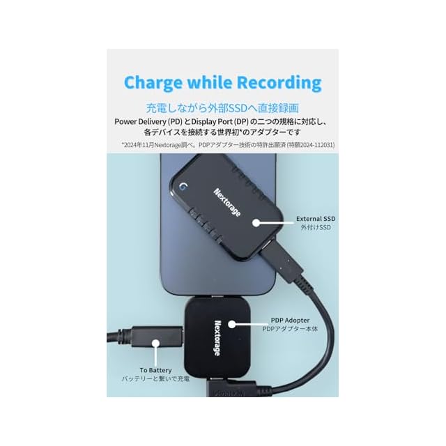 充電しながら4K動画を外部へ保存:スマホで撮影した4K動画を充電しながら、ポータブルSSD等の外部ストレージへ保存できます。