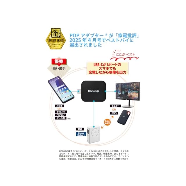 PDPアダプター[NX-PDPA1]は、今回行われたDGPモバイルアワード2025において、動画/配信アイテム部門の部門賞に加えて、DGPモバイルアワード2025の技術/企画特別賞を受賞。
