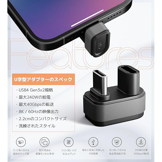 ✅【USB4規格に対応】USB4.0規格は、従来のUSB規格と互換性を持ちながら、最大40Gbpsの高速伝送を実現します。この規格に対応することで、ファイルの迅速な転送が可能となり、ストレスのないデータ管理が可能です。また、8K/60Hzの動画データにも対応しており、UHDムービーを数秒で転送できます。さらに、USB4.0はデータ転送だけでなく、映像出力や電力供給の機能も統合しているため、多機能性が求められる現代のデバイスに最適です。