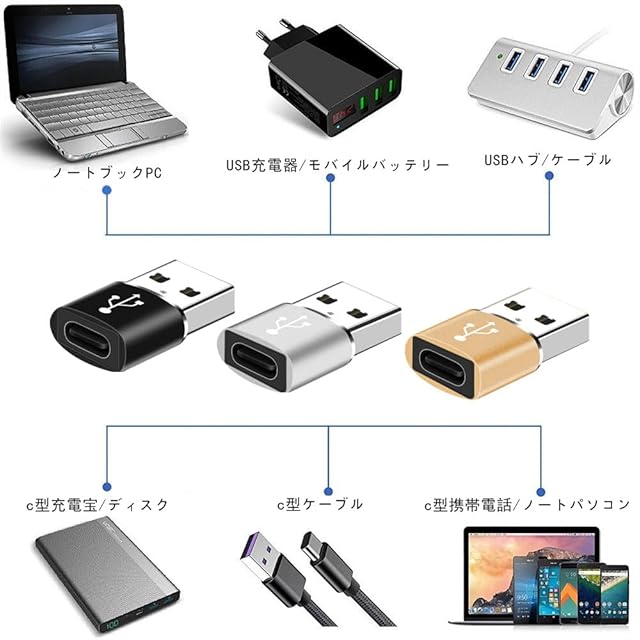 YFFSFDC USB CメスからUSBオス変換アダプター 3個セット USB OTG 変換コネクタ タイプc 急速充電 タイプC to A 変換コネクタMacBook iPad Pro iPhone 13/12/11 Pro Maxなどに対応