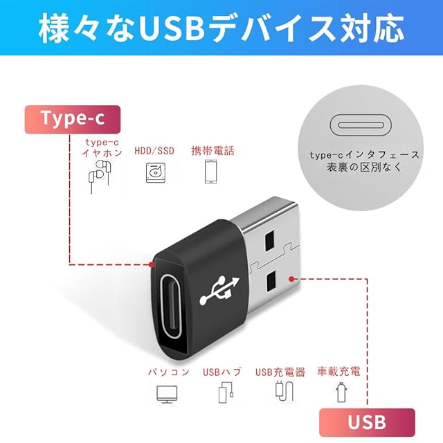5.【広範な互換性】USB C(オス) to Type-C(メス)変換アダプターは、Type-C(メス)ポートと接続して、スマートフォン、タブレット、USBメモリ、イヤホンなどの様々なデバイスをPCや充電器に簡単に接続できます。対応機種にはMacBook Pro、MacBook Air、iPad Pro、iPhone、Samsung Galaxy、Huawei、LG、Google Nexus、HTC、OnePlus、Lumia、Surface、Sony Xperia、Nokia N1など、USB-Cデバイスに幅広く対応しています。