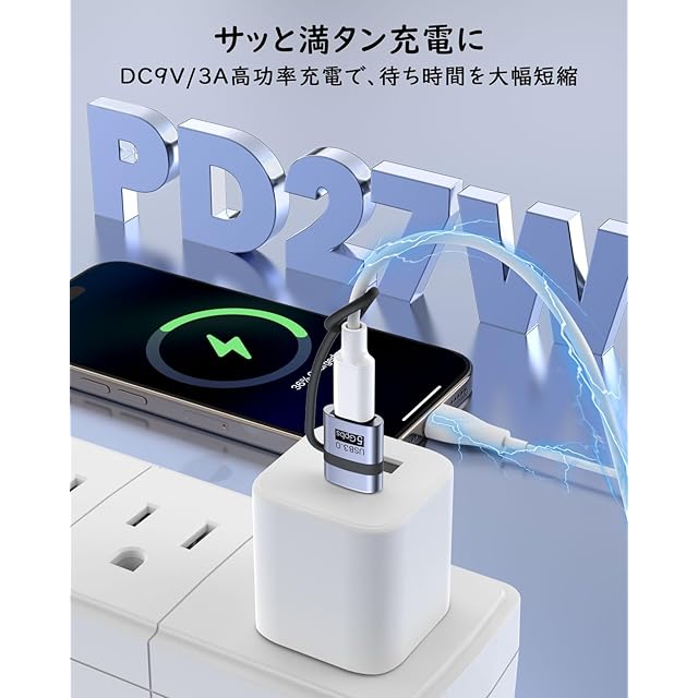 「高速充電&超速データ転送をサポート」PD規格に対応し、最大27W(DC9V/3A)または15W(DC5V/3A)の急速充電が可能です。さらにUSB3.0規格インターフェースを搭載し、片面接続時には最大5Gbpsの超高速データ転送を実現(反対面接続時はUSB2.0規格で480Mbps)。大容量ファイルの移動もスムーズに行えます。(ご注意:PD充電や高速転送が必要な場合は接続面をお確かめください。スピードが遅く感じられる場合は、接続端子を裏返しして再接続してください。接続ケーブルの長さや品質にも影響されます。)