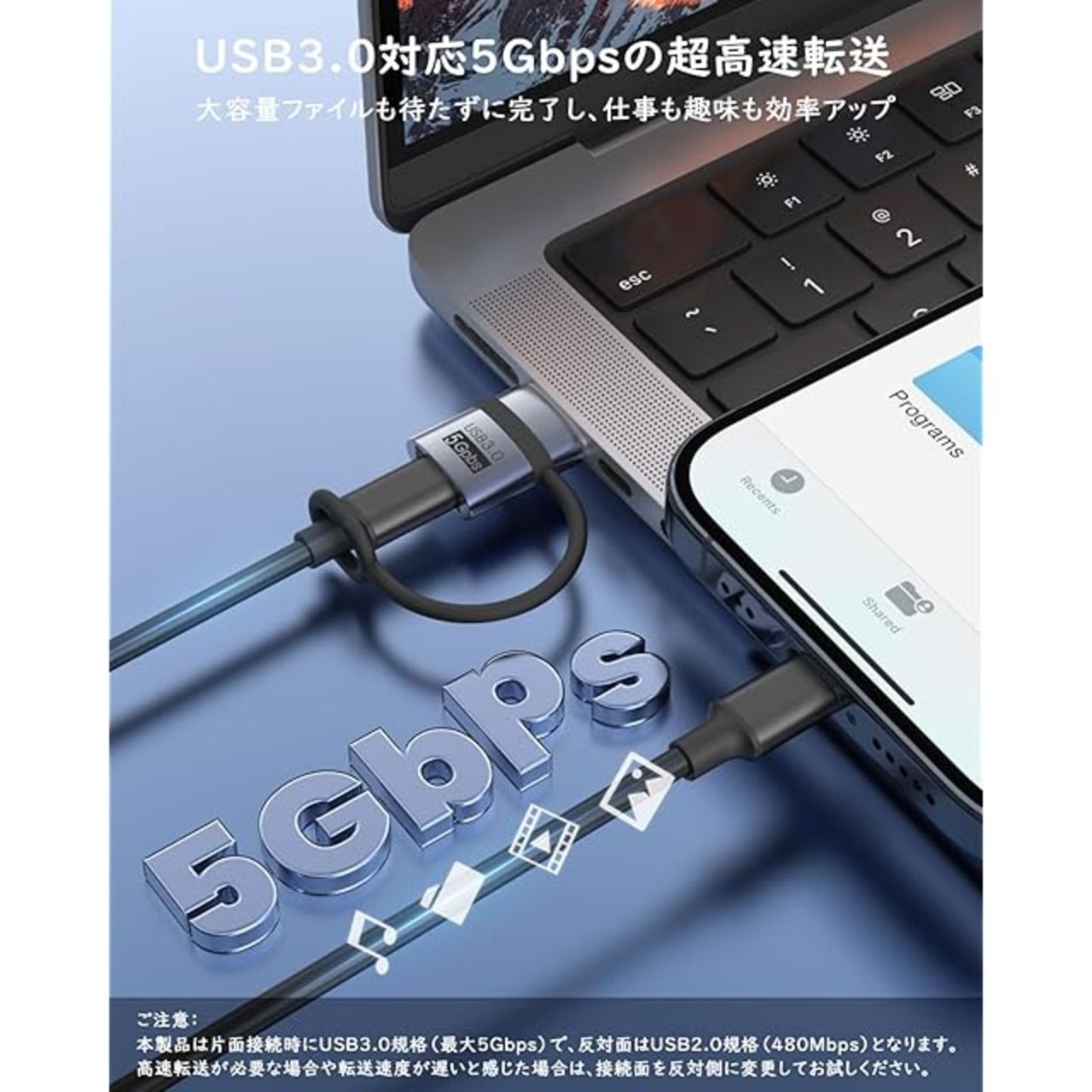 「異なるUSB端子もシームレスに接続」USB-A端子の充電器やPCと最新のType-C端末をスムーズに接続できるように設計されたアダプターとなります。2個セットで自宅と職場など複数場所に常備でき、PCを介さずに周辺機器を即座に認識させ、面倒な設定は一切不要で、すぐに使えて、様々な機能をしっかりと対応してくれます。