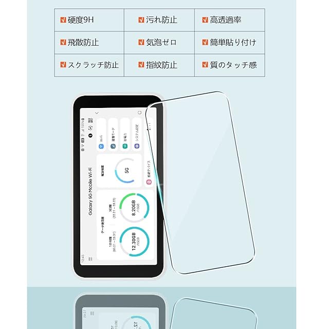 ★★★★★【対応機種】 Galaxy 5G Mobile Wi-Fi 専用です。本商品は日本素材のAGC旭硝子素材を採用して作られております。商品は一枚一枚手作業で検査しましたので、品質は非常に安定しております。ガラスフィルムの透過率は99.9%に達し、フィルムは0.26mmのゴールデン厚さを設計し、指紋ロック解除 などのタッチが敏感で、正しく連続的なタッチ使用体験を確保します。商品が届いた後、輸送中に破損したり(ガラス製品は壊れやすい可能性がある)、数が合わない場合がございましたら、お気軽にお問い合わせください。(18時間以内にお客様に満足できる返事を差し上げます。商品の問題に対しては、無料で交換または全額返金いたしますので、ご安心して弊社の製品をお買い求めください)。