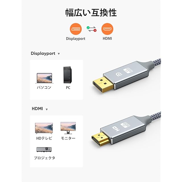 ✔DisplayPort - HDMI変換:このDP-HDMI 変換ケーブルを使うことによって、ノートパソコンなどの DisplayPortとHDMI受信機能搭載のモニター・テレビを接続することができます。複製モード&拡張モードに対応し、素晴らしい画像品質ときれいなサウンドをお楽しみいただけ、社内・家庭などの場所に最適です。