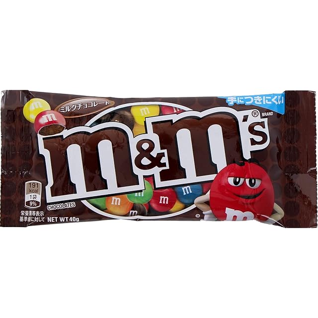 原材料:砂糖、カカオマス、脱脂粉乳、乳糖、ココアバター、植物油脂、乳脂肪、でん粉、水あめ、食塩、デキストリン、安定剤(アカシアガム)、乳化剤(大豆由来)、着色料(酸化チタン、黄5、赤40、黄4、青1)、香料、光沢剤、重曹