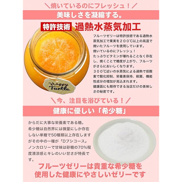 内容量:ゼリー90g×4個:果実{温州みかん、苺、イチジク、スモモ、桃、キウイ、梅、ブルーベリー(和歌山県)}、{ブドウ、洋なし、白ぶどう(国産)}、ドライフルーツ50g
