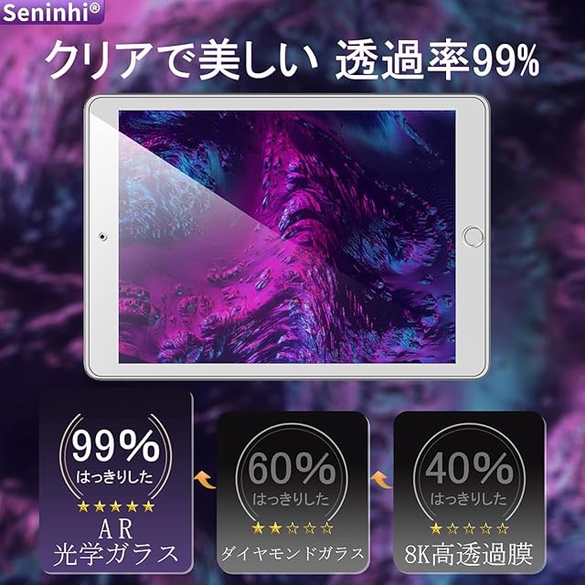★【高い透過率】新しくアップグレードした光学プロジェクション技術を使用して、より高い光透過率があり、超クリアな視覚体験を与えます。透過率99%超えのガラスフィルムで、液晶画面の鮮明度を損なうことなく、画面本来の美しさをそのまま表現します。裸画面の視覚感があるので、いずれ映画を見るか、ドラマを見ても、効果は非常に優れます。