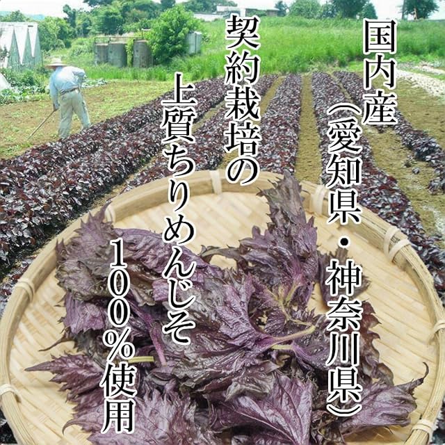 原材料 しそ(愛知県、神奈川県産) 漬け原材料(食塩、梅酢)酸味料(リンゴ酸)