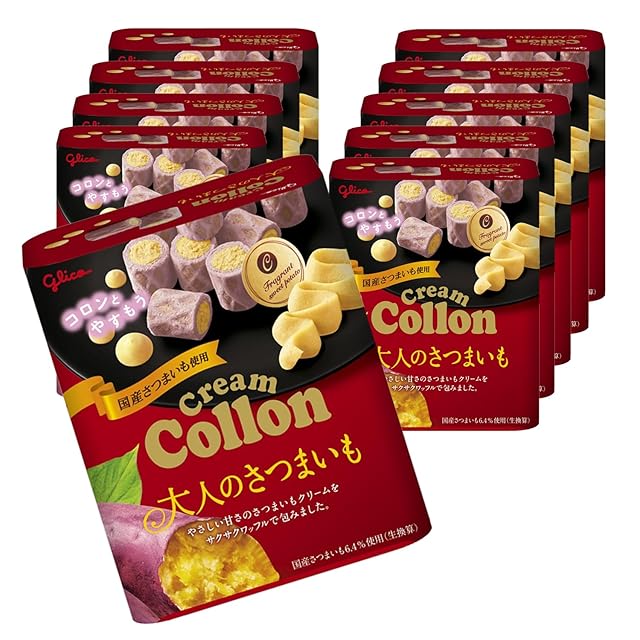原材料:ショートニング(国内製造)、小麦粉、砂糖、麦芽糖、ぶどう糖、鶏卵、デキストリン、乳糖、さつまいもパウダー、全粉乳、乾燥卵白、ミルクシーズニング、還元水あめ、紫いもパウダー、食塩/乳化剤、香料、クチナシ色素、カロチン色素、(一部に卵・乳成分・小麦・大豆を含む)
