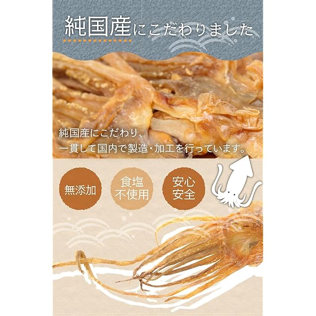 ✅【こだわり③加工まで国産】スルメイカは、生イカの内臓を水で綺麗にとり、開いていきます。そして何度か乾燥することでスルメになります。水を大量に使用するために、水の影響で味や品質が変わります。そのため、イカの産地からスルメになる加工まで、新鮮な状態のままするめにするために、加工まですべてを国産にこだわって作られています。