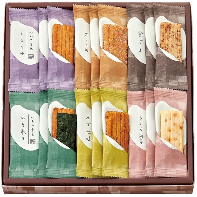 【商品内容】40個入(しょうゆ7個、ざらめ6個、金ごま7個、のり巻き6個、ゆず七味7個、さくら海老7個) 【形態】箱 【商品サイズ】縦25.5cm×横31.0cm×高さ4.0cm