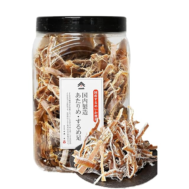 製造ロットによりするめ足の大きさにばらつきがございます。 以前より小さいするめ足が入ることが多くなっております。小さくなると食感がかたくなりますので、ご注意下さい。 ✅【2つの食感とおいしさが味わえるお得なセット】北海道産のあたりめと国産のするめ足をポットに詰め合わせたおつまみセットです。イカの胴本体を裂いて作られるあたりめと足の部分を使用したするめ足は、異なる食感をお楽しみいただけます。噛めば噛むほどに増していくイカの味わいを、ぜひ食感とともにご賞味ください!