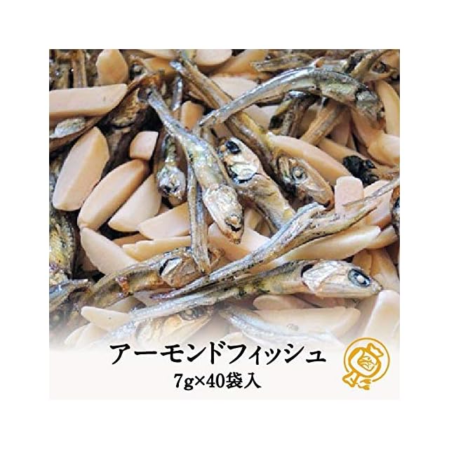 原材料:アーモンド(米国産)、かたくちいわし(国内産)、砂糖、ごま、醤油〔大豆(遺伝子組換えでない)・小麦を含む〕、澱粉分解物、食塩、トレハロース、調味料(アミノ酸等)