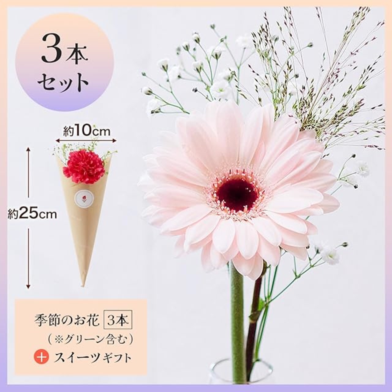 size:S(生花3本) style:メッセージカード無: