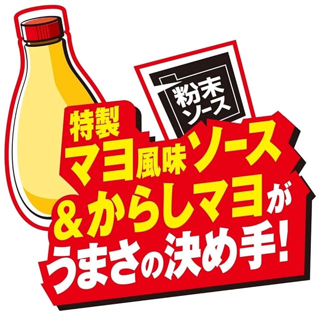 デカくてウマい、カップ焼そばと言えばコレ。マヨネーズが香り立つマイルドな味わいの特製マヨ風味ソースと、クセになるからしマヨがうまさの決め手のWマヨソース焼そば。麺はガーリックを練り込んだ大盛り麺130gで食べ応え抜群。