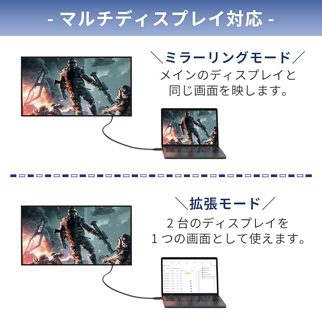 【マルチディスプレイ対応】ミラーリングモード・拡張モード・マルチディスプレイに対応しています。 ビデオストリーミングやゲーム用のメイン画面を複製したり、デスクトップ領域を拡張したりできます。