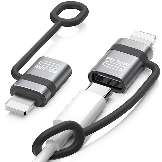MoKo Type Cからライトニング変換用アダプタ 2枚セット 紛失防止シリコンストラップ付き Type C to ライトニング変換アダプター 480Mbpsデータ転送/36W PDチャージ対応 軽量小型 iOS TypeC変換アダプター iPhone14/13/12/11ProMax/iPad/iPodなどライトニングコネクタ搭載のアップル端末に対応【イヤホン対応不可、OTG不可】 Gray
