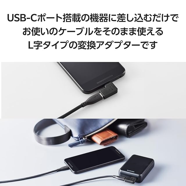 USB Type-CプラグとUSB Type-CポートがL字/縦向きに配置されています。