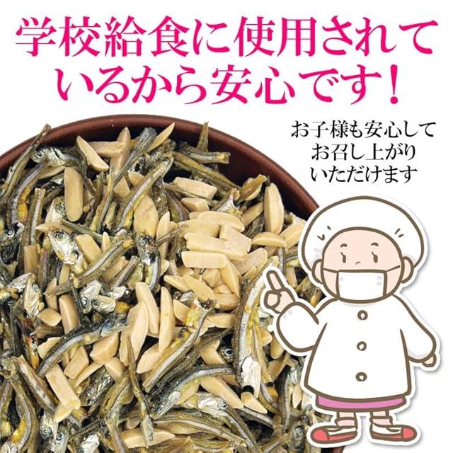 瀬戸内海・九州産の片口いわしと、無塩・無油・無添加の素焼きアメリカ産アーモンドを使用。小魚の旨味とアーモンドの香ばしさが絶妙にマッチしたおやつ。