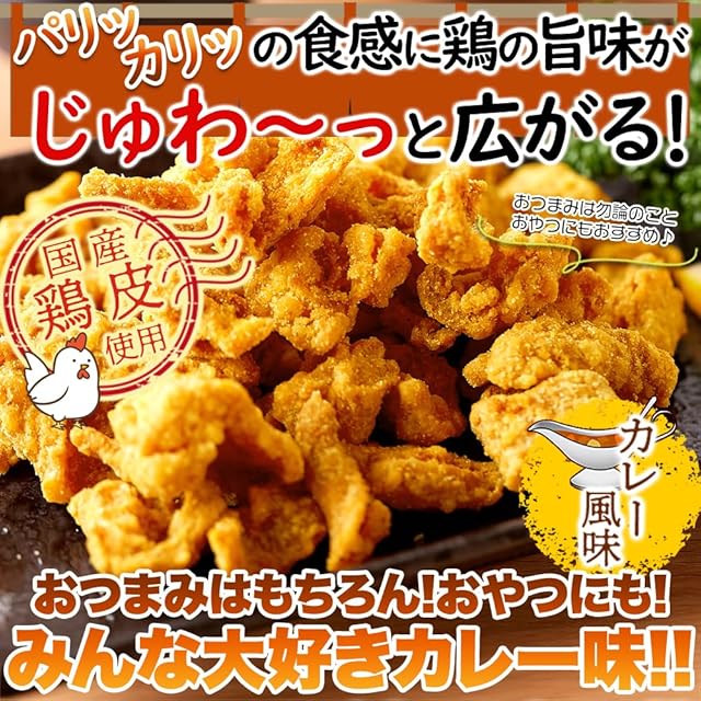 ✅【国産の鶏皮使用!!】国産鶏皮を使用しているので、鶏独特の臭みも少なく、カレー風味のシーズニングによくなじみます。
