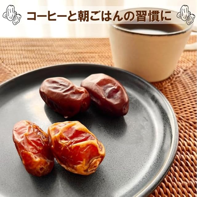 栄養豊富:栄養豊富なスーパ-フード・デーツ。カリウム・カルシウム・マグネシウム・亜鉛・食物繊維が豊富。血糖値の上がりにくい低GI食品としても注目されています。