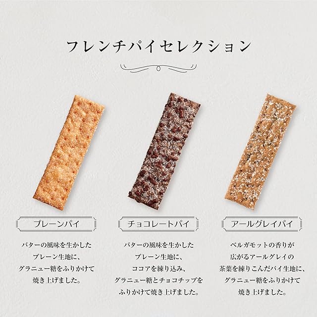 内容量:20枚(プレーンパイ×8枚、チョコレートパイ×4枚、アールグレイパイ×8枚 計20枚)
