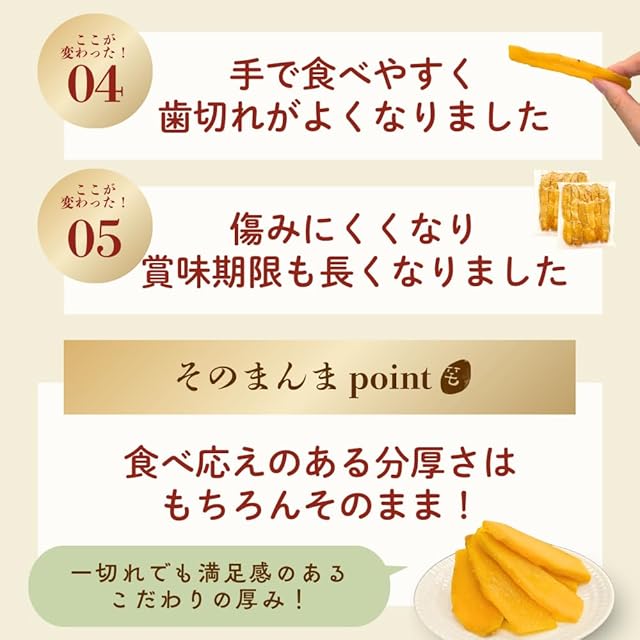 ヘルシーおやつ低GI食品として健康志向の方やダイエット中、筋トレのサポートとしても注目されています。ダイエット食品として置き換えするもよし、お菓子のかわりに食べればより満足感が得られます。美容においても注目されておりキレイにおいしくダイエットをサポート。特にダイエット中の方は豆乳などの飲料やプロテインなどと干し芋を組み合わせることをおすすめ。