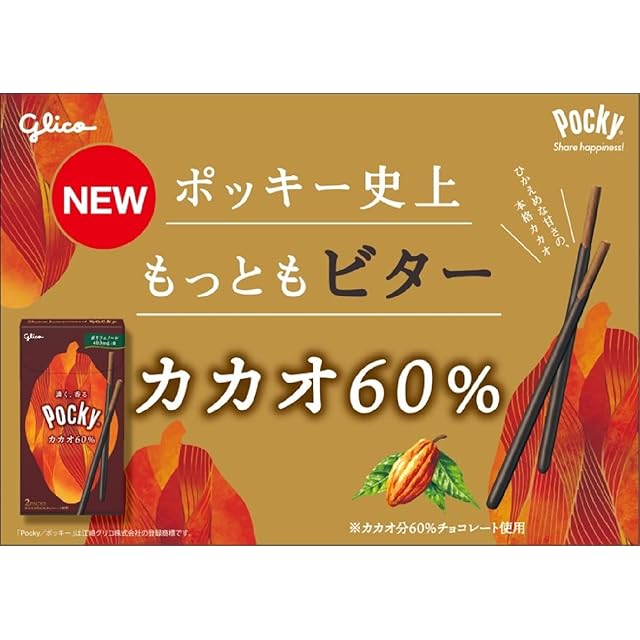 ポッキー史上最もビターなカカオ60%配合したポッキーです。コーヒーのお供にもぴったりなチョコレートです
