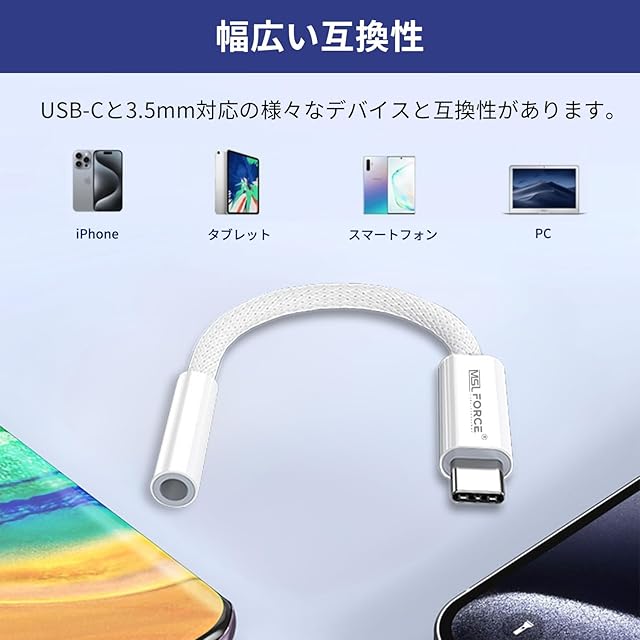 【USB-C to 3.5mmイヤホン】 本製品はUSB-C端子(オス)から3.5mm端子(メス)に変換するアタブタです。iPhone、iPad、または MacbookなどUSB-C対応のデバイスに接続し、充電や音楽を聴いたり通話が可能です。イヤホンコントロール機能に対応し、音量や通話の操作ができます。複雑な設定は必要なくプラグ&プレイで挿し込んだらすぐに使えます。