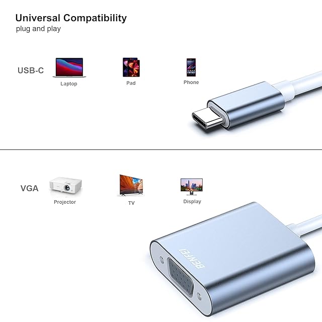 コンパクト設計-コンパクト設計のポータブルBenfei USB-C-VGAアダプターは、コンピューター、デスクトップ、ラップトップ、またはUSB-Cポートを備えたその他のデバイスをモニター、プロジェクター、HDTV、またはVGAポートを備えたその他のデバイスに接続します。 この軽量のガジェットをバッグやポケットに入れて、ラップトップやプロジェクターでビジネスプレゼンテーションを行ったり、デスクトップ画面をモニターやテレビに拡張したりできます。 VGAケーブルが必要です。