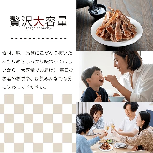 【お酒のお供に最適】ビール、焼酎、日本酒など、様々なお酒と相性抜群。ちょうどいい歯ごたえと濃厚な味わいが、お酒の楽しみを倍増させます。