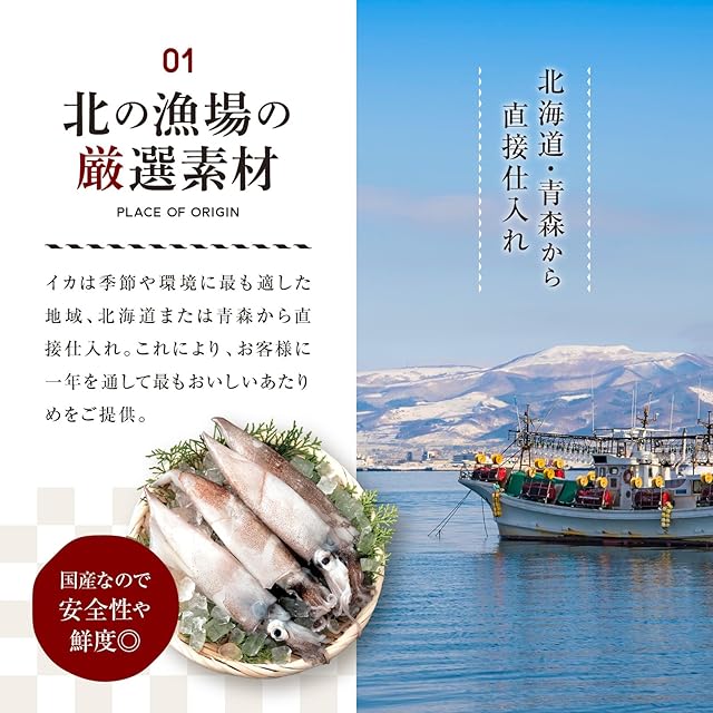 【北海道・青森近海産スルメイカ使用】新鮮な国産イカを厳選し、函館で丁寧に加工。無添加・無塩で素材本来の旨味を凝縮した、珍味、おつまみです。