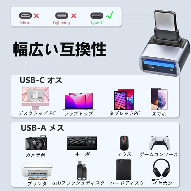 【幅広い互換性】USB-Cは簡単に携帯電話またはタブレット、任意の充電器やコンピュータに接続します。USB Type-CポートのあるPCやスマートフォン(MacBook Pro、MacBook Air、MacBook、Chromebook Pixel、Nexus 6P、Nexus 5X、Xperia、Galaxy、AQUOSフォンなど)から USBハブ、フラッシュメモリ、マウスなどがご利用頂けます。ほとんどのUSB-C機器とUSB-A機器を簡単に接続できます。