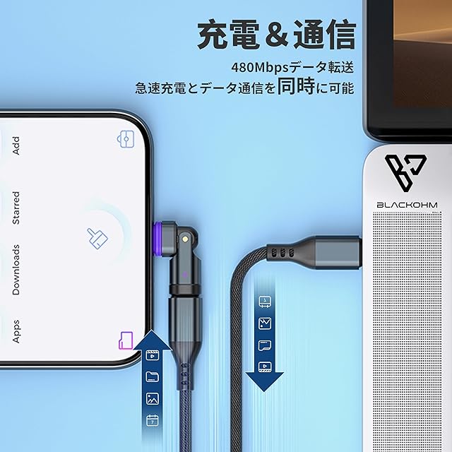 【強力マグネット搭載】強力なマグネットを採用しており、端子とケーブルがしっかり吸着するため、安定した接続が可能です。充電中の不意なケーブル抜けを防ぎ、充電中のデータ転送やゲーム、動画視聴などもストレスなく行えます。さらに、マグネット接続により、抜き差しの際の端子摩耗を軽減し、デバイスやケーブルの寿命を延ばすことができます。