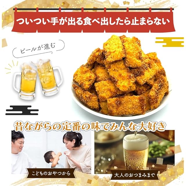 【こんなシーンにおすすめ!】おやつとして:子どものおやつや、小腹が空いた時のお供に。 おつまみとして:ビールやハイボール、チューハイとの相性抜群! 家族団らんに:みんなでシェアできるので、お茶請けやおやつタイムにぴったり。パーティーやイベントで:大人数でワイワイ楽しめる。
