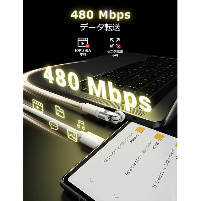 【ご注意】このUSB-C変換アダプタは充電ケーブルを接続するためだけに使用されています。この製品はビデオ出力をサポートしておらず、4K/8K転送をサポートしていません。USBハブ、HDMIポートなどの接続には使用できません。充電ケーブル、USB 2.0データ転送のみに適しています。