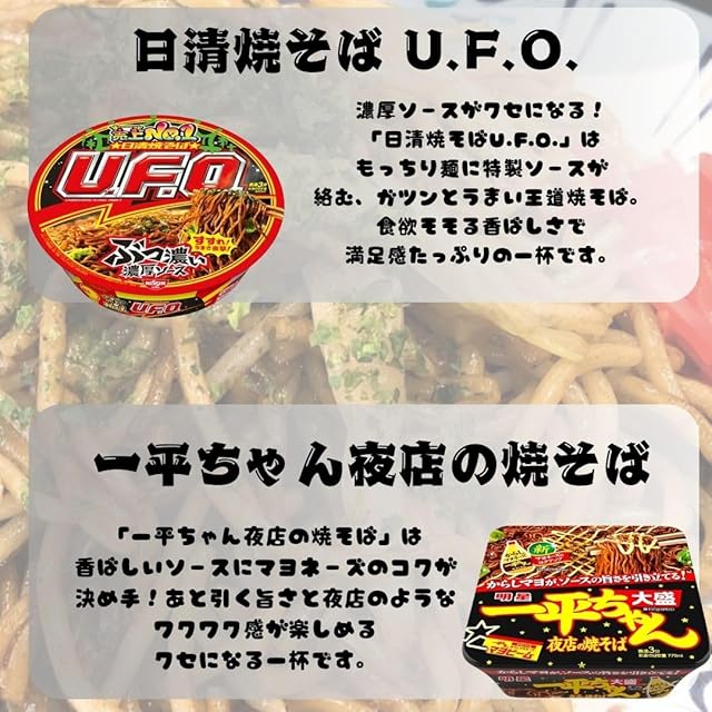 ✅・日清 焼そばUFO ・明星一平夜店の焼そば ・明星一平ちゃん夜店の焼そば豚旨塩だれ ・明星一平夜店の焼そば旨辛明太子味 ・マルチャンごつ盛りソース焼そば ・マルチャンごつ盛り塩焼そば ・ヤマダイ大阪ホルモンたれ焼きそば ・サッポロ一番オタフクお好みソース味焼きそば ・サッポロ一番塩カルビ味焼そば ・日清ソース焼そばカップ チキンスープ付き・仙台牛タン風味塩焼そば