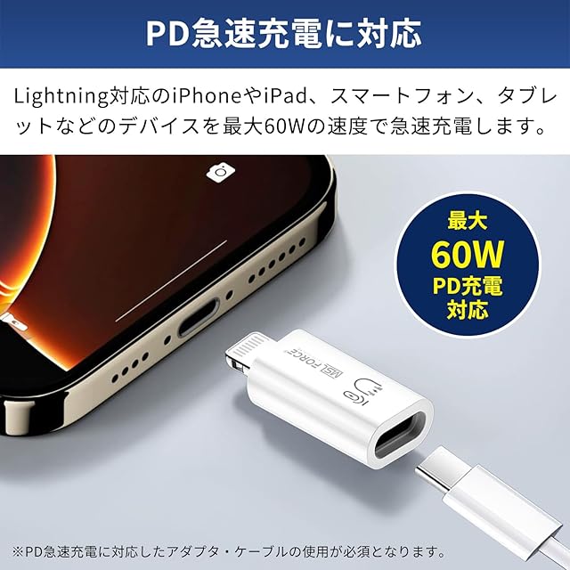 【PD急速充電対応】USB PD技術により、PD対応のアダプタ・ケーブルと組み合わせて使用することで急速充電が可能です。PD急速充電に対応したアダプタ・ケーブルの使用が必須となります。